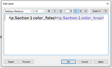 The label for each section header changes color based on two calculated fields: