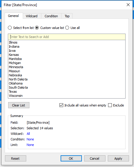Copy/paste values from Excel into a Tableau filter using the “Custom Value List” option