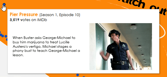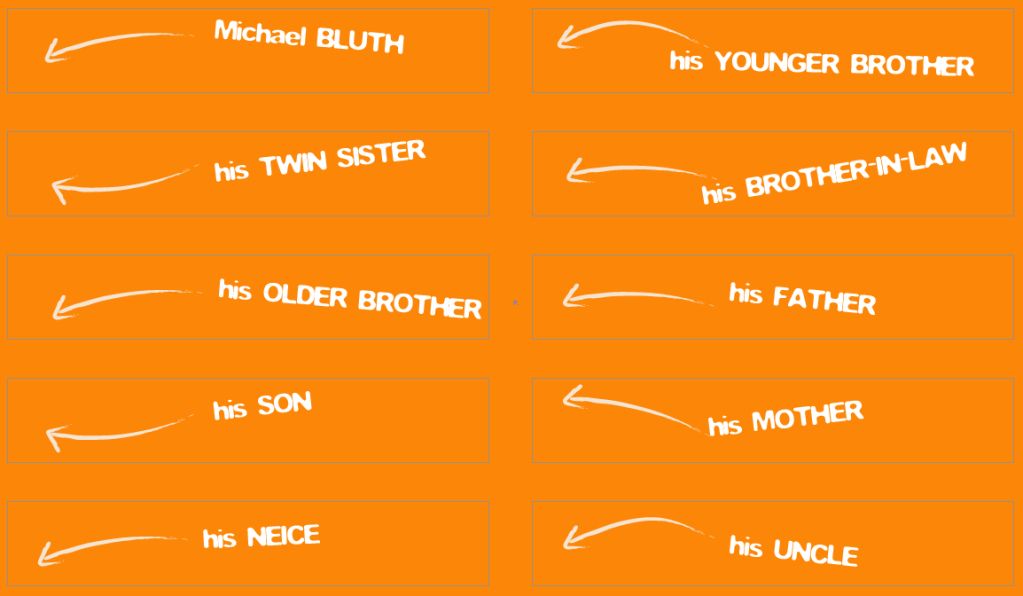 There’s functionality on the family tree such that when you hover over a character, their relationship to Michael Bluth is shown. I thought this would be a fun way to pay homage to the opening credits of the show.