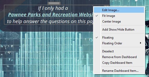 • Right-click the transparent shape, select Edit Image, and paste the URL of your dashboard in the “URL Opened When Image Is Clicked” field.