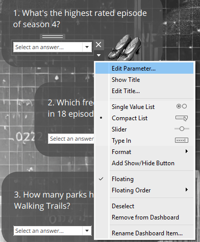• Tip: Edit the parameter right from your dashboard by right clicking it and selecting “Edit Parameter”: